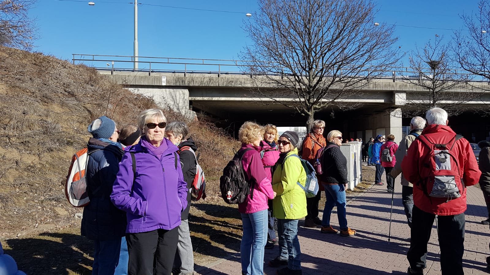am Sonntag, den 24.2.2019 treffen sich 54 Wanderer um 9 Uhr am Bahnhof GG-Dornberg. Bei strahlendem Wetter fährt unser Zug und die S-Bahn zum Flughafen Frankfurt. Wir wandern durch Terminal 1, fahren mit der Flughafenbahn zu Terminal 2, hier ist unsere erste Rast. Dann geht es auf die Wanderstrecke, über Unterschweinstiege, Pappelpfädchen, Lichtalschneise, durch das Wasserschutzgebiet auf ebenen Wegen durch Wald und Feld. Unser Endziel ist in Schwanheim, die Gaststätte Frankfurter Hof, hier werden uns Köstlichkeiten serviert.