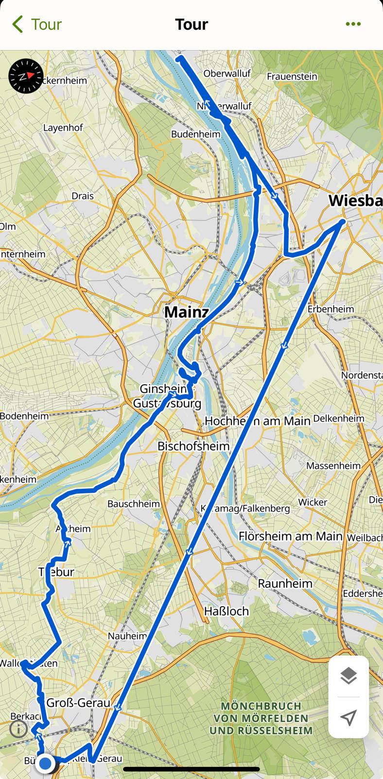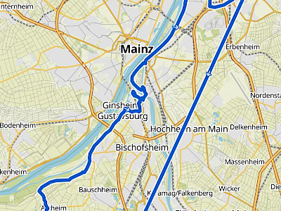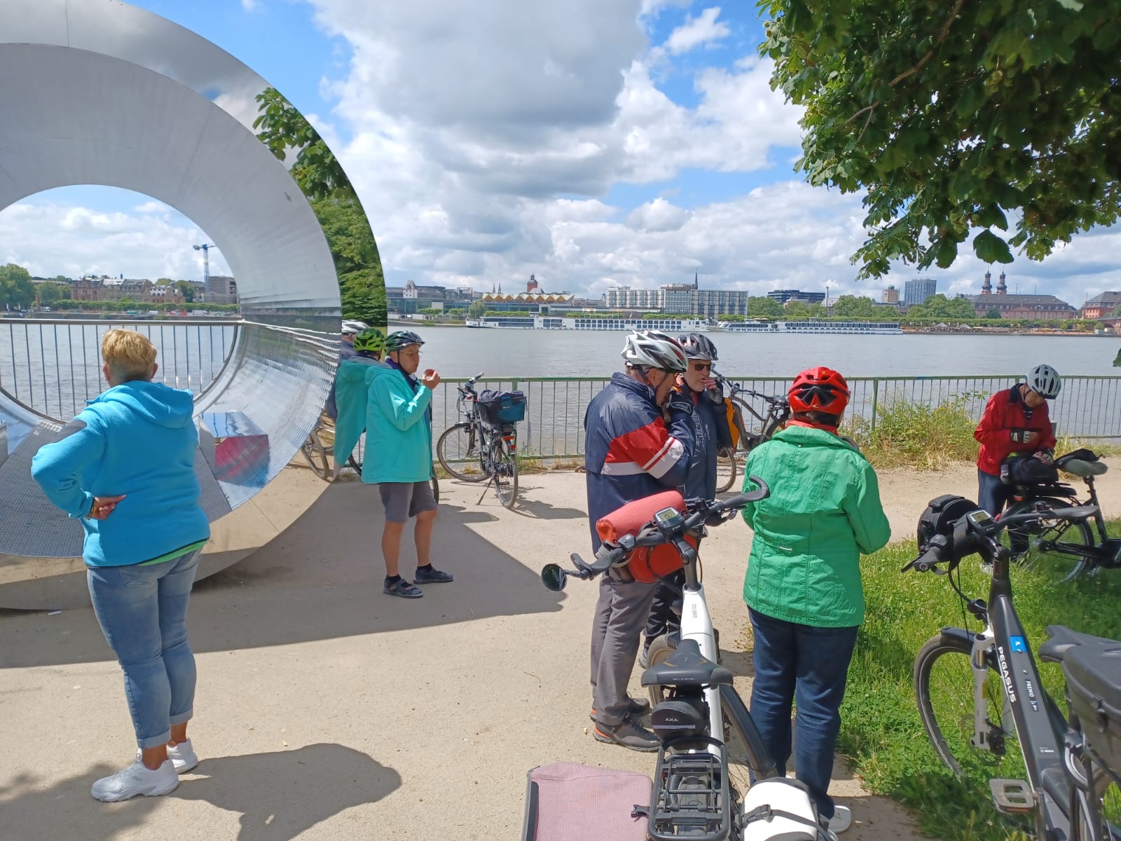 Startpunkt in Büttelborn am Friedhof um 10 Uhr. Wir radeln Richtung Trebur und weiter am Rhein entlang unter der Weisenauer Brücke hindurch nach Gustavsburg . Dann über den Main nach Mainz- Kostheim. Wieder zum Rhein an der Theodor-Heuss-Brücke vorbei und schließlich bis nach Eltville.