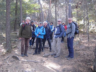 Die Wanderung startete in Neustadt an der Weinstrasse. Zuerst die A-Gruppe, da sie mit dem Bus bis kurz vor den Einstieg des Wanderweges gefahren wurde. Nun ging es immer bergauf, nicht allzusteil aber gut 1 1/2 Std. bergauf. Jeder war froh, als es auf ebenem Weg weiterging. Endlich war es gemütlich geworden! Da wurde die Rechnung ohne Werner Hock gemacht! Ganz schnell war der Spaß vorbei und es ging nochmal ca. 700 m bergauf!