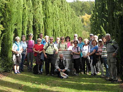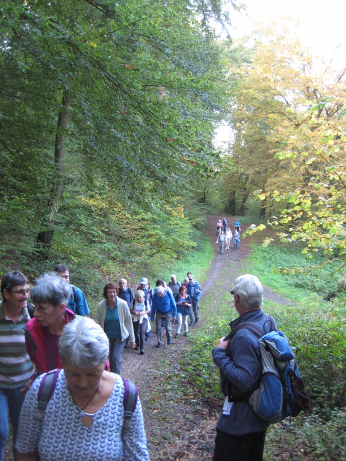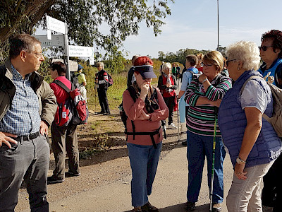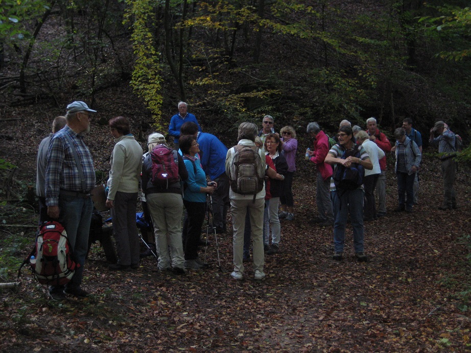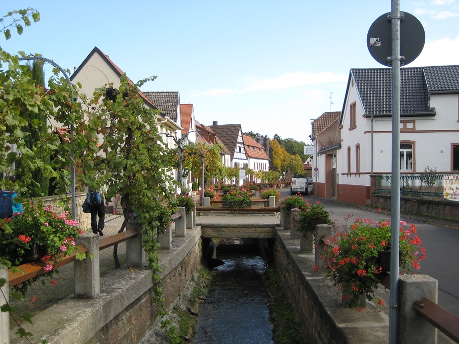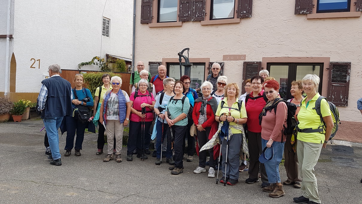Dort angekommen machte sich die A-Gruppe auf den Weg. Zunächst ging es durch Wald und Wiesen bis Kleinkarlbach. Durch den Ort ging es weiter auf schönem weichen Waldweg entlang eines Baches. Dabei streifte die Wandergruppe neben Obst- und Gemüseanbauflächen auch einige Weingüter. Gerne hätten die Wanderer den neuen Wein verkostet, jedoch hatten alle Weingüter auf der Strecke an diesem Tag ihre Pforten geschlossen !