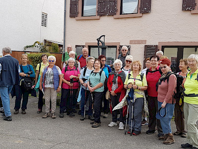 Die B-Gruppe startete ihre Wanderung am Ortseingang von Kleinkarlbach und lief dieselbe Strecke bis zum Ziel Großkarlbach. Die Schlusseinkehr wurde im Hotel-Restaurant Winzergarten mit Pfälzer Spezialitäten und gutem Wein vorgenommen.