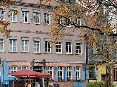 Am Ende unserer Wanderung nehmen wir die einzige Fähre der Stadt Frankfurt. Die Schlusseinkehr ist in der Gaststätte "Zum Bären".