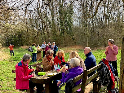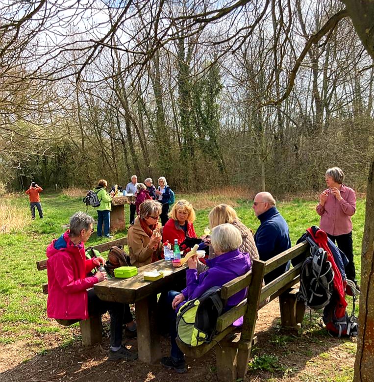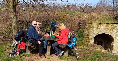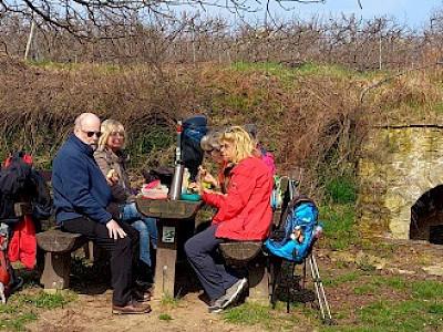 Hinter dem Ort Ludwigshöhe führt uns der Wanderweg zum Vögelsgärtenbrunnen. Hier machen wir unsere Mittagspause.