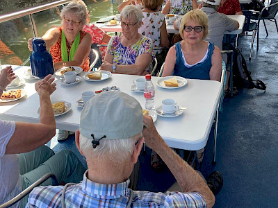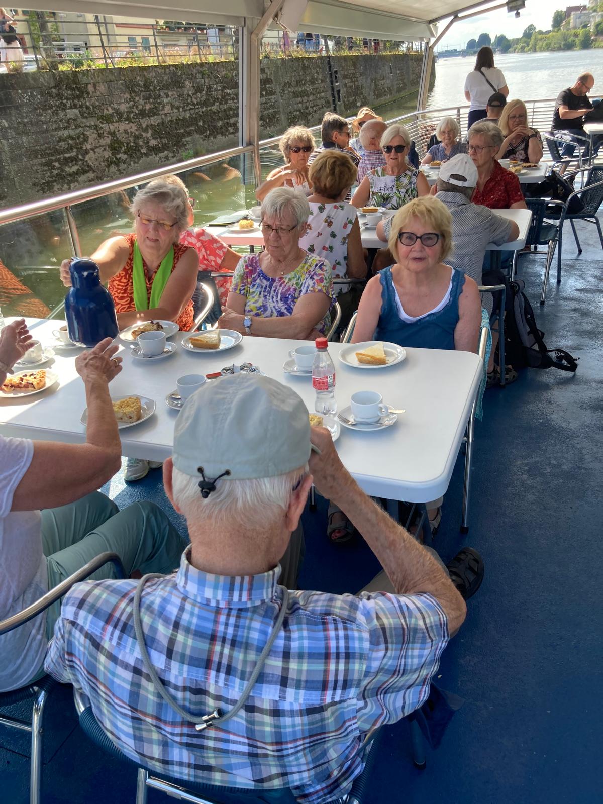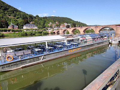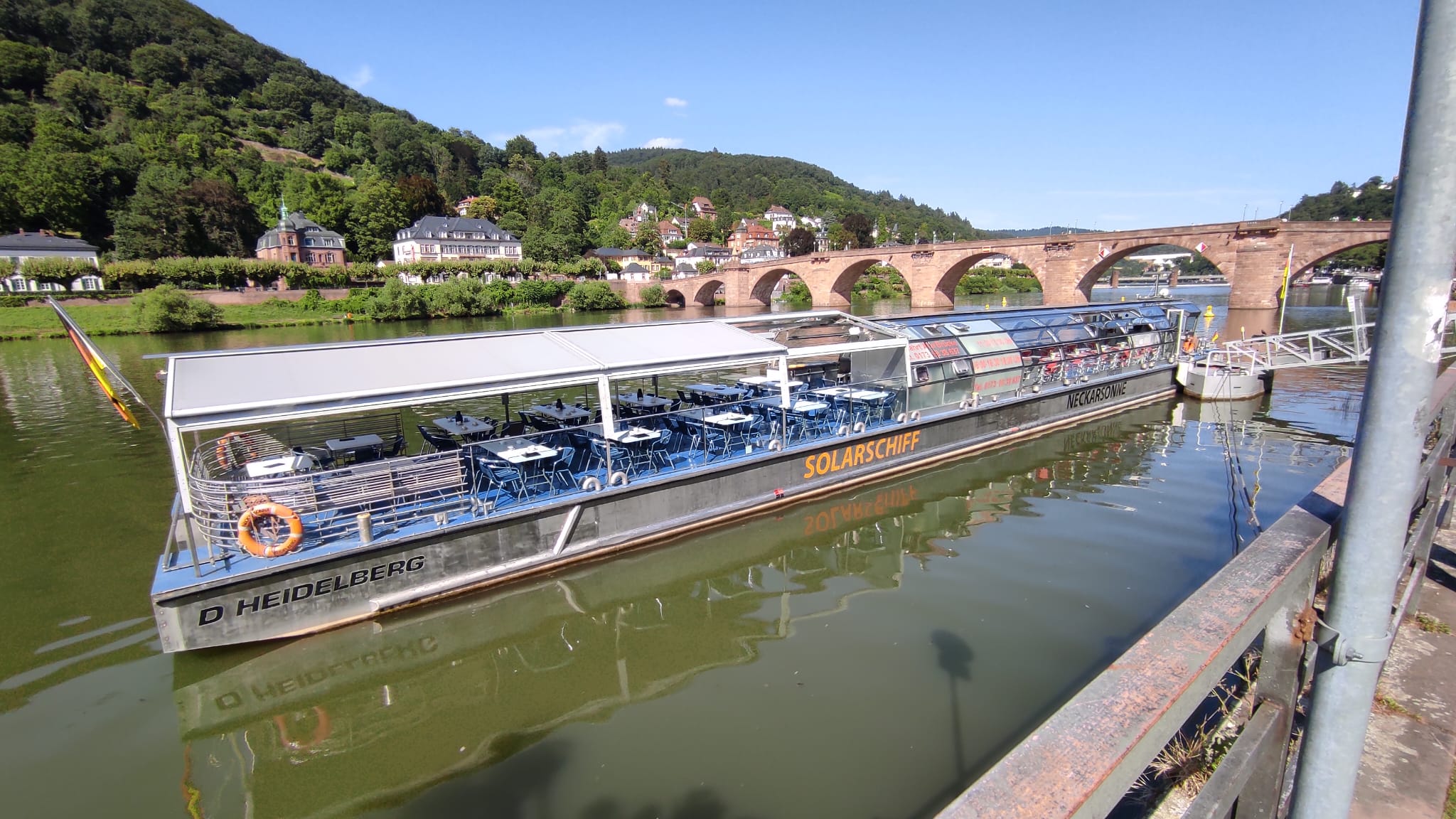 Um 16:30 Uhr heißt es Leinen los, wir genießen Kaffee und Kuchen auf einem Solarschiff auf dem Neckar und treten anschließend den Heimweg an.