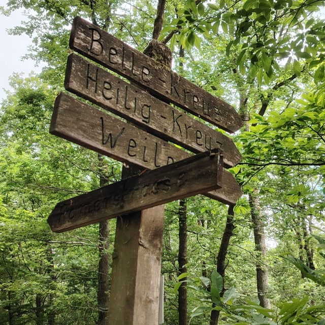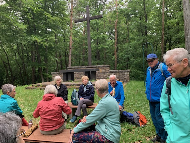 über den „Heilig Kreuz Weg“ bis zur Waldkirche, wo wir eine kurze Rast einlegten. Zu unserer