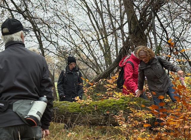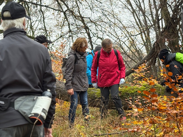 Auch trübes, regnerisches Novemberwetter hielt 33 Naturfreunde am 9. November 2025 nicht davon ab, sich am Naturfreundehaus Mörfelden zur fast letzten Tour des Jahres zu treffen.Gemeinsam starteten wir, vorbei am Campingplatz zu den „Sitzkieseln“, die an mehreren Orten im Regionalpark Rhein-Main zum Verweilen einladen, diesmal allerdings blieb das Sitzen eher theoretisch, denn die Kiesel waren nass und kalt. Weiter ging es über die Schnepfenschneise, an der ehemaligen Grillhütte vorbei entlang des Bornbruchsees. Dort trafen wir zwei unerschrockene Frauen, die trotz des Wetters noch ein Bad im See nahmen – Respekt! Hier trennte sich unsere Gruppe C mit dem Wanderführer Helmut Opper, um den See gemütlich zu umrunden. Die übrigen Gruppen wanderten weiter durch den herbstlichen Wald. Mit Laub bedeckte Wege und einige umgestürzte Bäume sorgten dafür, dass es trotz fehlender Steigungen nicht langweilig wurde. Danke an unseren Wanderführer Harald Altwig für die abwechslungsreiche Führung – auch flach kann schön sein, besonders im bunten Herbstwald. Entlang des Hegbachs ging es weiter über den Hegbachweg zur Altschlagschneise. Dort bog Gruppe B mit Wanderführerin Ursula Altwig Richtung Kalksandsteinwerk ab. Gruppe A nahm den Weg über Mittel- und Feldschneise ebenfalls dorthin und gelangte anschließend direkt zurück zum Naturfreundehaus.