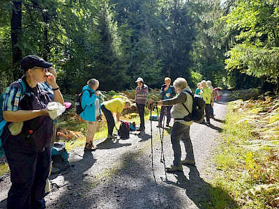Das Räuberland im Spessart rief und die Naturfreunde Büttelborn kamen zum wiederholten Mal. Es nahmen 37 Wanderer an der Tour teil. Anfänglich sah es aus, als wollte der Wettergott uns doch im Stich lassen, aber nein, der Regen verzog sich, die Wolkendecke brach noch auf und die Sonne zeigte sich. Unser Bus brachte uns nach Heimbuchenthal, wo wir uns aufgeteilt in drei Gruppen auf den Weg begaben.