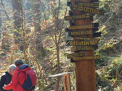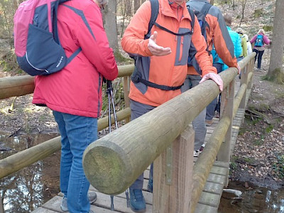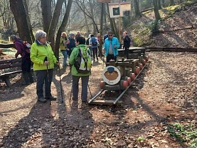 Gruppe A, beginnt in Mümling Crumbach, läuft entlang der Mümling nach Höchst, dort geht es in Richtung Obrunnschlucht, in dieser geht es in leichten Steigungen vorbei an sehenswerten Miniaturmodellen und Schnitzereien auf einem gut gehenden Waldweg Richtung Rimhorn. Oben angekommen laufen wir auf Wald und Feldwegen Richtung Mümling Crumbach, dort wartet der Bus zur Weiterfahrt zur Abschluss Raststätte „Zum Jonny“ in Höchst Hetschbach, Wegstrecke 12 km.