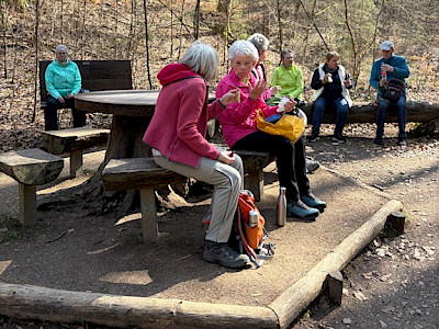 Gemeinsam fuhren die Gruppen zur Abschlussraststätte „Zum Jonny“, wo Gruppe C bereits eingetroffen war. Nach der Wanderung war es besonders schön, bei gutem Essen, leckerem Kuchen und erfrischenden Getränken in fröhlicher Runde zusammenzusitzen und die Zeit bis zur Heimfahrt zu genießen.