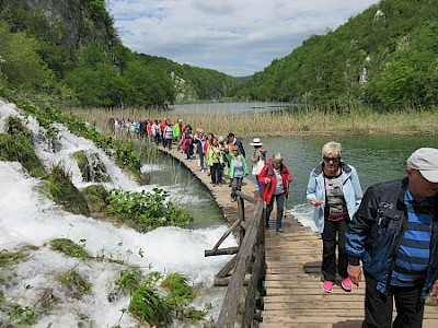 4. Tag: Eine Tagesfahrt zu den weltbekannten Plitwitzer Seen zeigt uns ein Naturparadies von ausgesprochener Schönheit. Wir wandern durch den Nationalpark entlang den Fällen und blaugrünen klaren Seen bei herrlichem Sonnenschein.