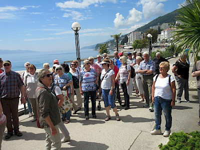 5. Tag: Entlang der Küstenstraße erreichen wir Opatija, ein noch immer mondäner Kurort, gegründet für Kaiser und Adel der Habsburger. Man spürt noch heute das Flair vergangener Zeiten mit alten Villen, prächtigen Hotelbauten und Parks.