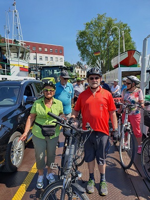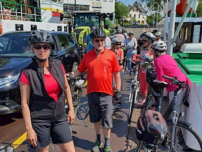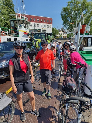 Die Fähre steht bereit und ohne große Wartezeit setzen wir über zum Kornsand. Aber dann, mit ordentlichem Rückenwind führt der Weg über Geinsheim und Wallerstädten wieder zurück nach Büttelborn und nach Worfelden.