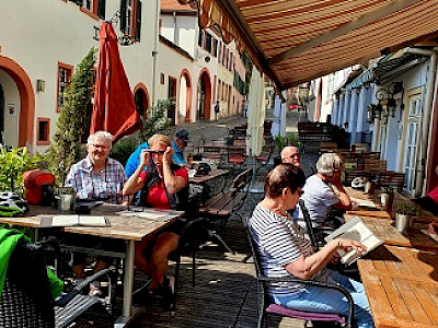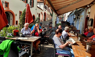 Im Anschluss, gegenüber vom Rathaus , auf der Sonnenterrasse, beim "Italienischen Lokal" können wir uns wieder "Stärken" bevor es auf den Rückweg geht.